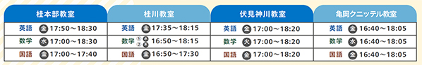 教室 桂本部教室・桂川教室・伏見神川教室・亀岡クニッテル教室